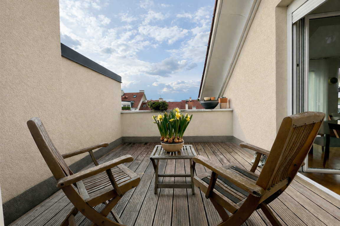 Orientacija bivalnih prostorov je obrnjena proti zahodu, medtem, ko so spalni prostori orientirani na vzhodno stran. Zunanje površine – terasa in dva balkona – ponujajo prostor za sprostitev. Stanovanju pripada tudi prostorna kletna shramba, lastniško parkirno mesto in garaža.